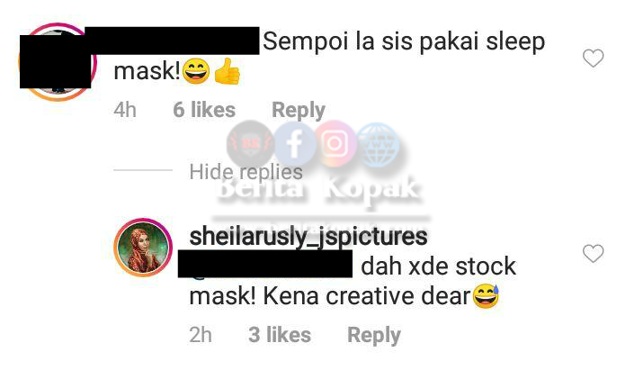 Rata-rata netizen menegur mask yang dipakai oleh Sheila. Antara komen-komen mereka :