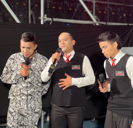 ” Pada mula adik Amad langsung tumbang, tak boleh bangun, lembik lutut tiba-tiba bila sampai turn dia nyanyi.. ” – Ustaz Din
