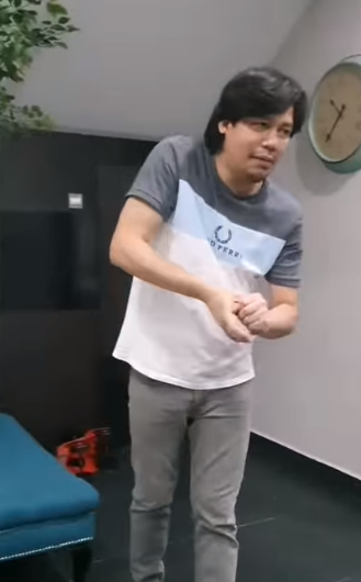 ” Pada mula adik Amad langsung tumbang, tak boleh bangun, lembik lutut tiba-tiba bila sampai turn dia nyanyi.. ” – Ustaz Din