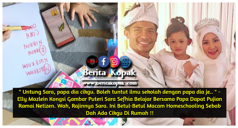 Menerusi akaun Instagram, Elly berkongsi gambar-gambar anak kesayangannya belajar dan menyiapkan kerja sekolah bersama suaminya. Sara yang kini masih bersekolah di tadika dilihat begitu tekun sekali menyiapkan kerja sekolah.
