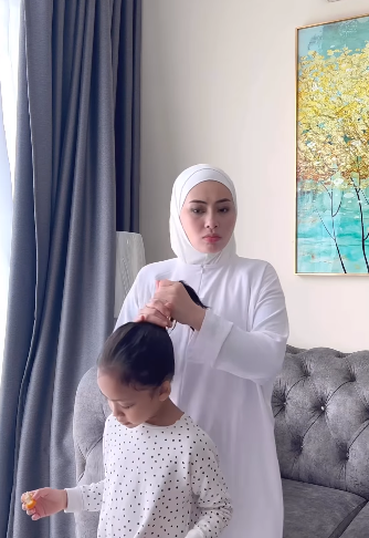 ” Haha, padahal blh je lepaskan rambut tu , eh tidak nk jugak heret skli.. Sabar lh duhai anak dapat mak caring tapi macamni plak.. “