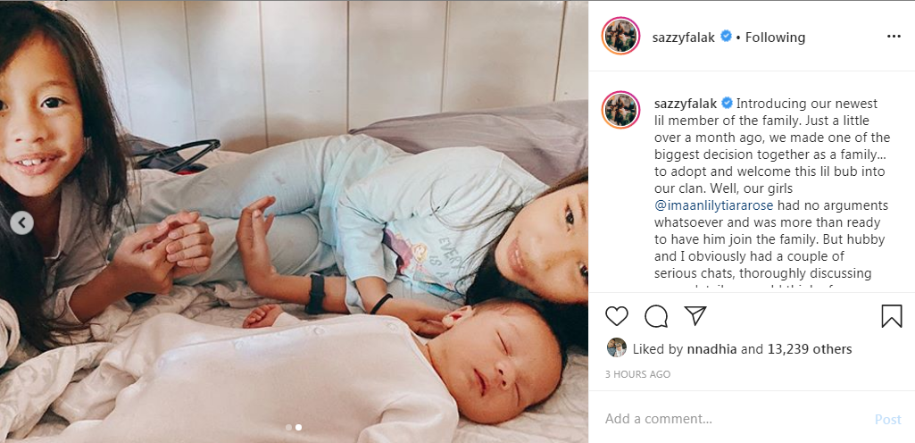 Menerusi akaun Instagram, Sazzy Falak telah berkongsikan beberapa keping memperkenalkan bayi lelaki yang merupakan anak angkatnya. Menceritakan betapa suk4rnya untuk membuat keputusan ini,namun sudah tertulis bayi itu akhirnya menjadi milik mereka. Selamat datang Idris !