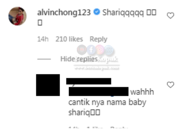 Namun komen daripada Alvin Chong menarik perhatian. Wah nama baby ke tu, sedap je bunyinya.