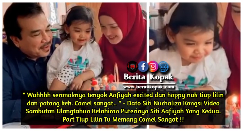 ” Wahhhh seronoknya tengok Aafiyah exc1ted dan happy nak tiup lilin dan pot0ng kek. Comel sangat.. “