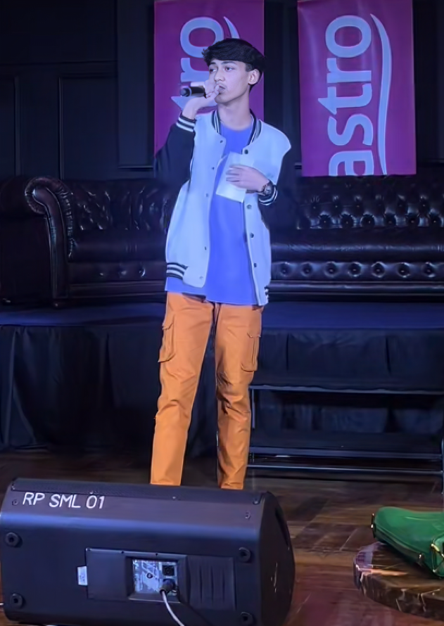 ” Pada mula adik Amad langsung tumbang, tak boleh bangun, lembik lutut tiba-tiba bila sampai turn dia nyanyi.. ” – Ustaz Din