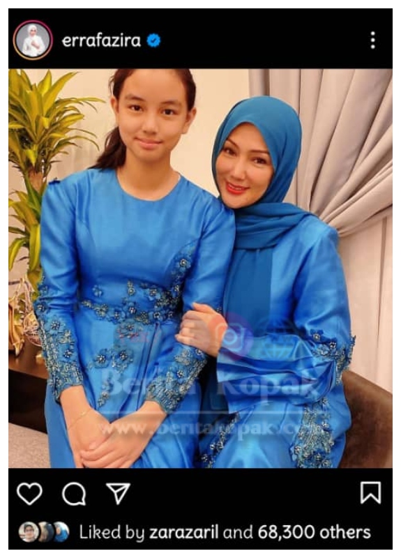 Jarang untuk peminat dapat melihat gambar Aleesya dikongsikan Erra. Sudah menginjak ke alam remaja, Aleesya juga kelihatan pem4lu orangnya. Meninjau akaun Instagram Erra Fazira, telah dikongsikan sekeping gambar terbarunya bersama Aleesya.