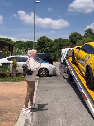 Kereta mewah berwarna kuning ini baru sahaja tiba dari Pulau Pinang dan dihantar dengan menggunakan perkhidmatan lori towing. Kata Makder, tuan punya kereta sedang tidur kerana demam. Sempat Makder berseloroh mengatakan demam kerana hendak besar.