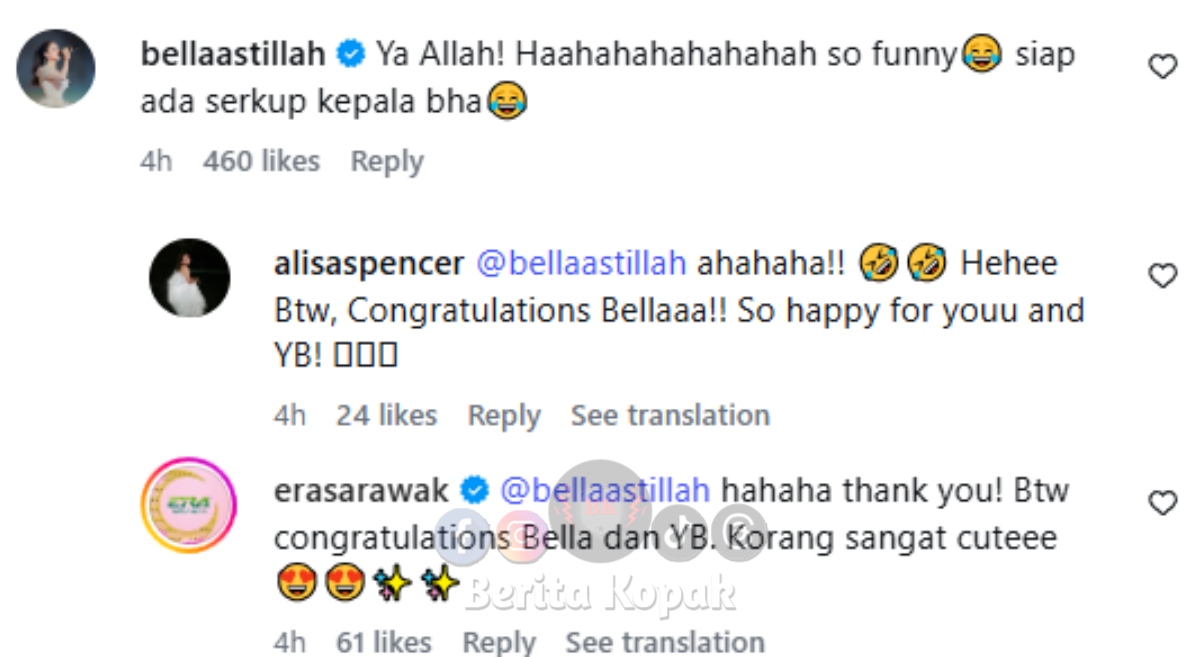 ” Ya Allah, hahaha so funny. Siap ada serkup kepala bha.. ” – Bella Astillah